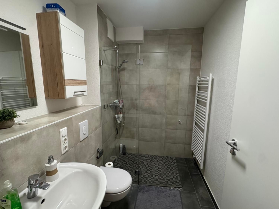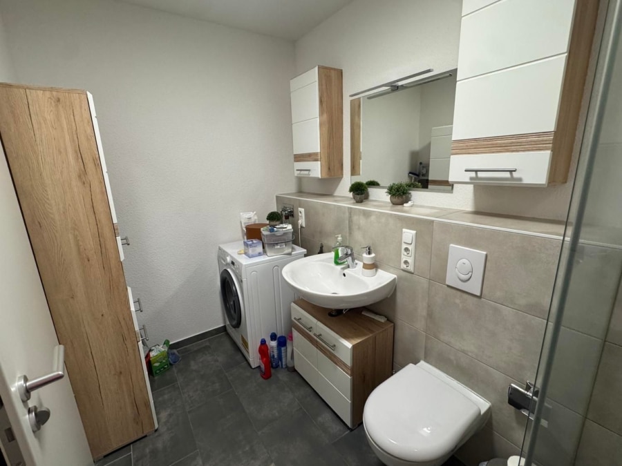 Die Wohnung verfügt über ein innenliegendes Duschbad, in dem sich auch ein Waschmaschinenanschluss befindet.